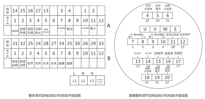 整體型多回轉(zhuǎn)電動(dòng)執(zhí)行器 接線圖